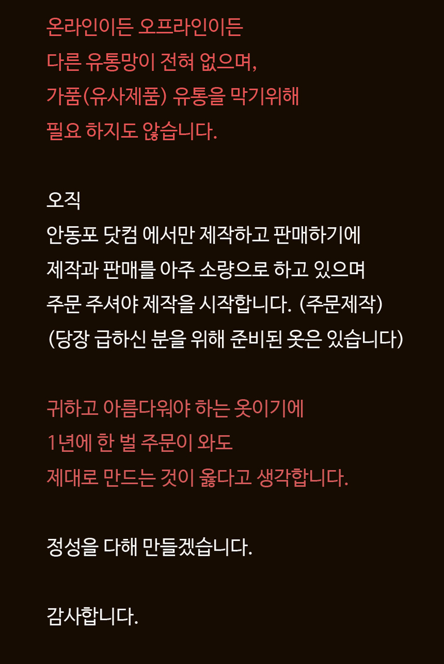 진품 안동포만을 전문적으로 판매하는 안동포닷컴을 설립하게 되었습니다.