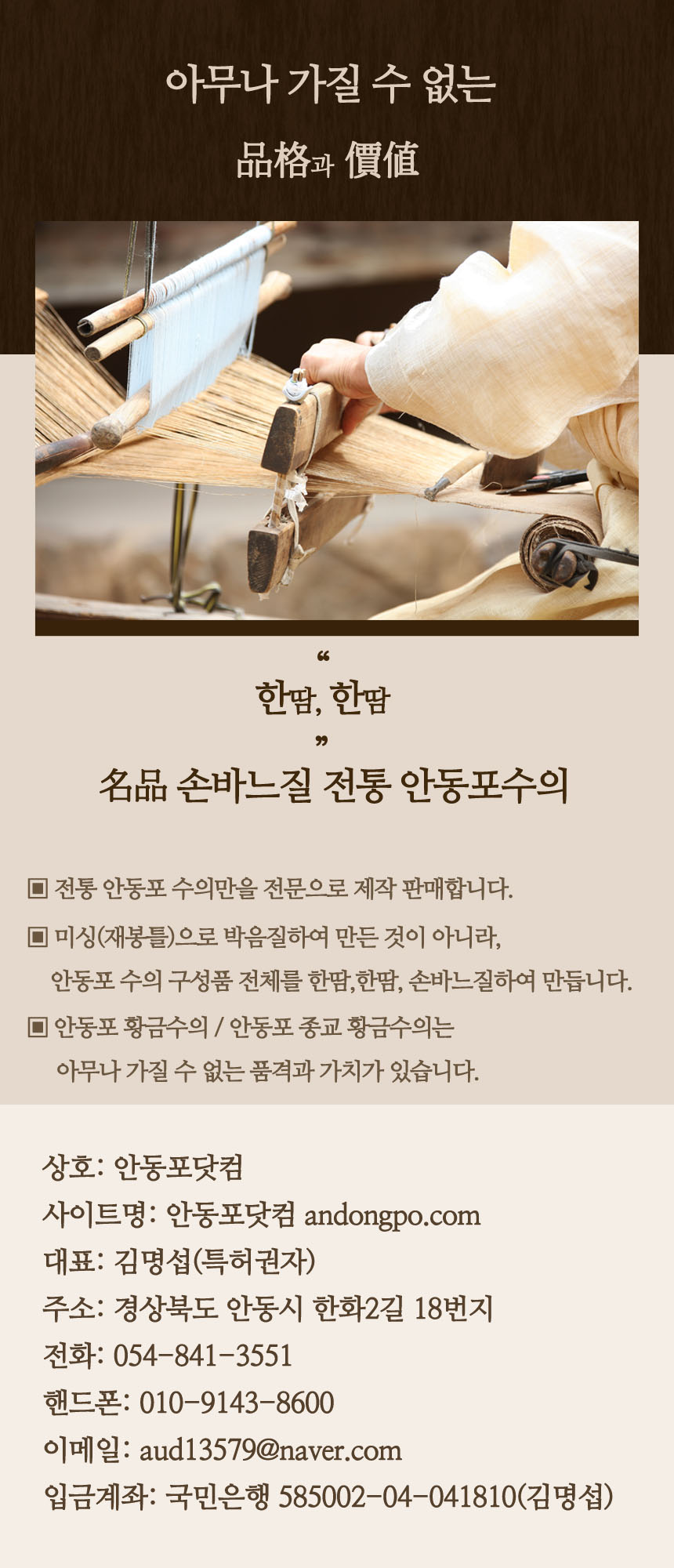 상호명 : 안동포닷컴 | 대표 : 김명섭