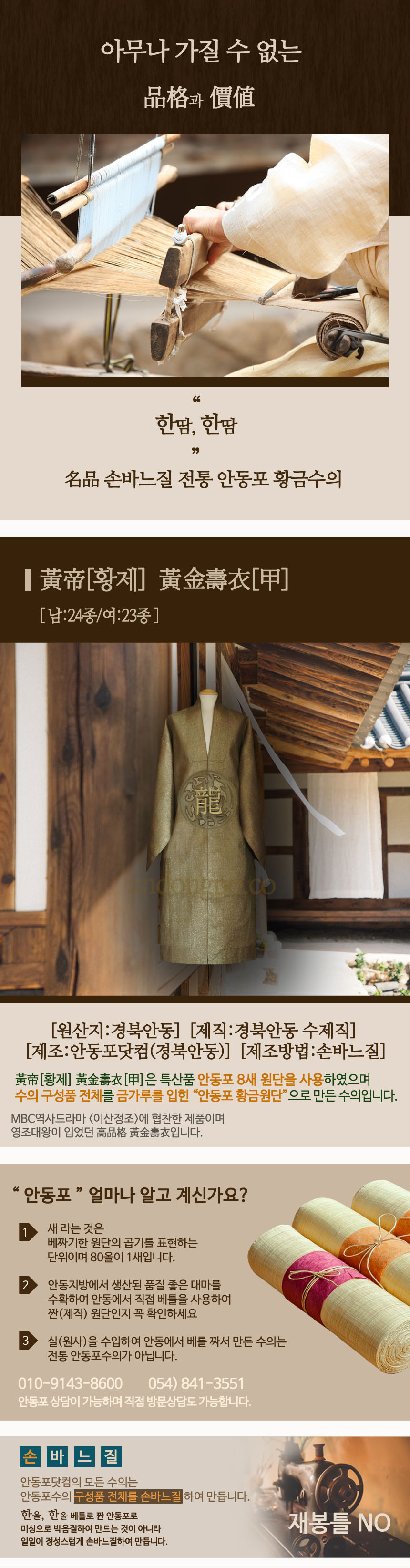 영조대왕(이순재씨 분장)이 입었던 高品格 黃金壽衣입니다.